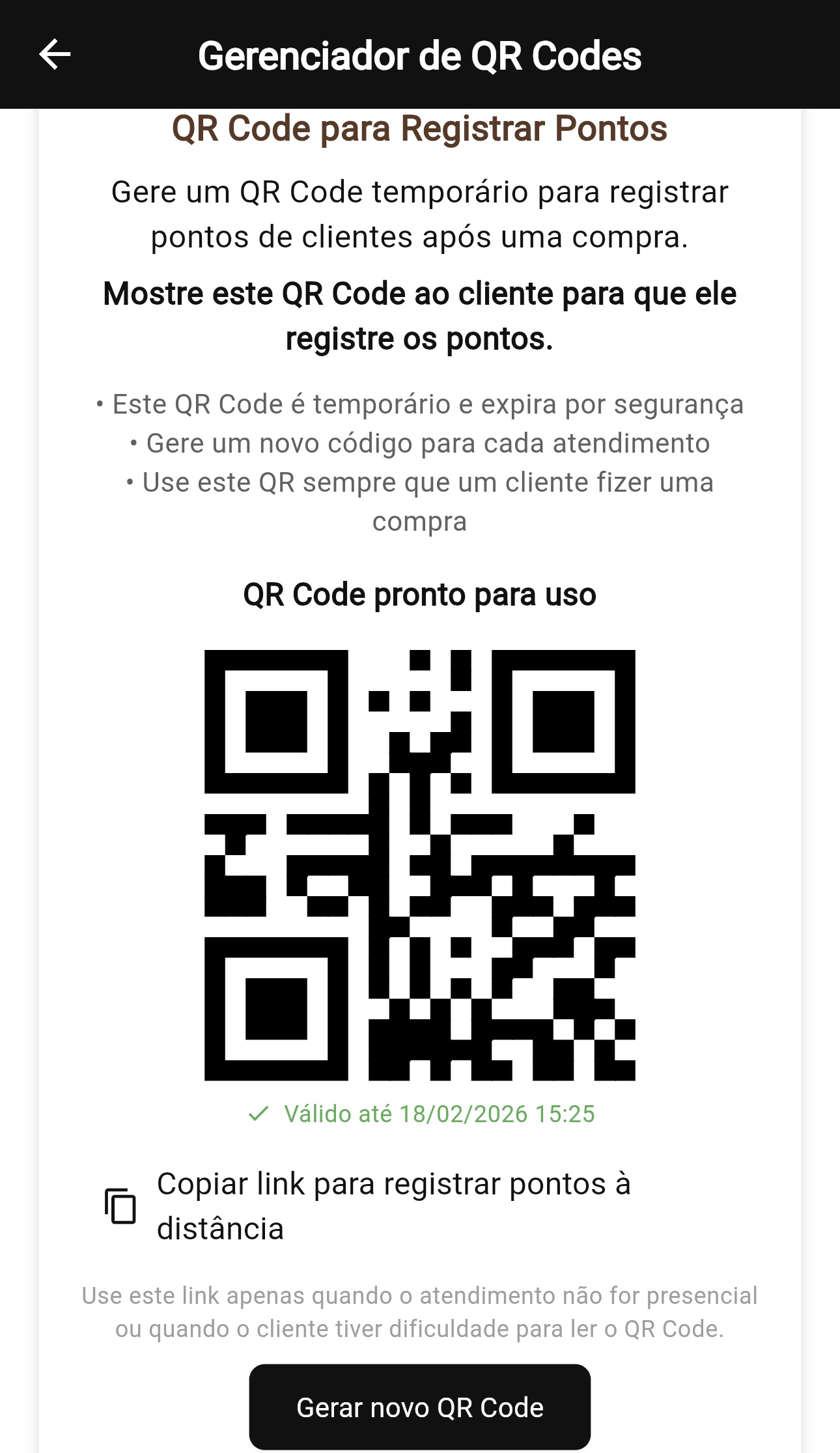 - ativar ou desativar o programa de fidelidade